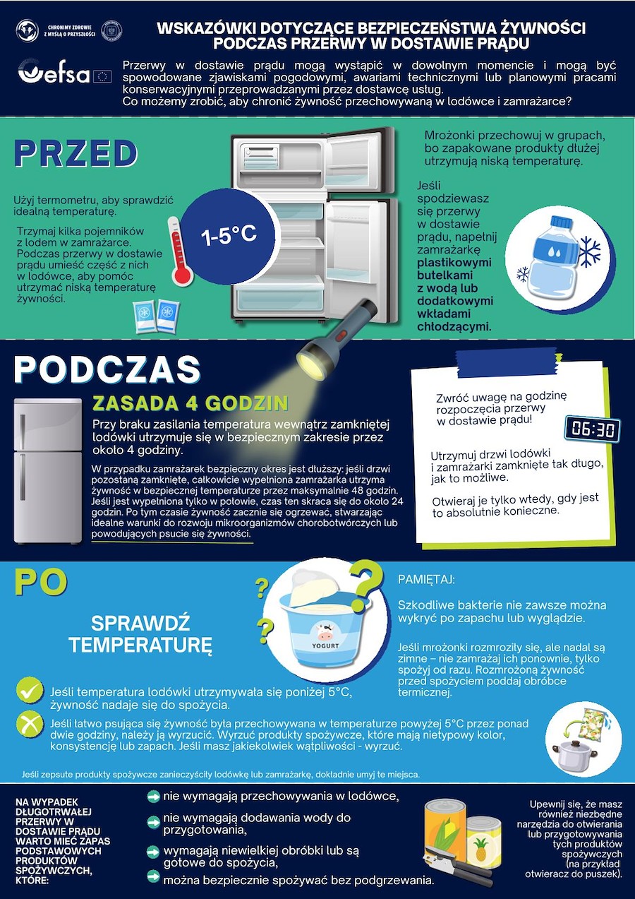 Wskazówki dotyczące bezpieczeństwa żywności podczas przerwy w dostawie prądu.